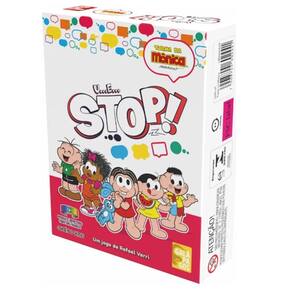 Chame seus amigos para uma nova experiência do popular jogo de palavras: UeStop! traz a mesma diversão e simplicidade do jogo clássico, mas com categorias novas para responder. O UeStop! da Turma da Mônica irá testar os seus conhecimentos sobre os Personagens, o Bairro do Limoeiro e muito mais. Componentes: 48 cartas de categorias/letras 4 cartas customizáveis 1 carta de Dona(o) da Rua 7 cartas de regra.
