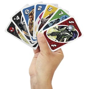 O Jogo Uno Marvel Spider Man conta com cartas especiais com imagens do herói, além das tradicionais cartas de números e cores. O objetivo é ser o primeiro a se livrar de todas as cartas da mão, seguindo as regras clássicas do Uno.