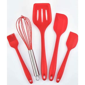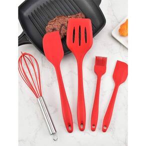 Jogo Utensílios Cozinha 5 Peças Silicone Cor: Vermelho Especificações: - Higiênico e de fácil limpeza - Manuseio simples - Não derrete nem arranha as panelas - Resistente e bastante durável - Suporta altas temperatura - Peças em silicone livre de bpa sem componentes nocivos à saúde . - Com furação para pendurar. - Silicone que suporte de 230 e temperaturas negativas de até -40. - Pode ser lavado em lava-louça.