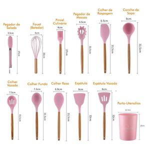 Especificações Técnicas: Composição: Madeira Carvalho e Silicone Térmico de alta qualidade Cor Principal: Rosa Número de peças: 12 Temperatura Suportada: de -30C até 230C Peso Bruto: 1,16Kg Tamanho da Embalagem: 12,5 x 12,5 x 33,5cm.