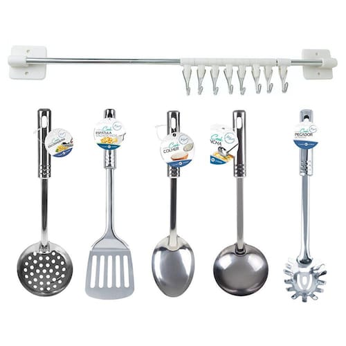 Para você que busca o acessório ideal para deixar sua cozinha ainda mais completa o Conjunto Utensílios De Cozinha em Aço Inox Kit 6 Peças Com Suporte veio para facilitar sua vida!