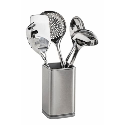 O kit Completo de Utensílios para Cozinha com 6 peças foi feito em inox e traz total beleza para sua cozinha, realmente a qualidade é incrível. O cabo é feito em madeira para ter segurança e praticidade no manuseio e preparo de receitas. Conjunto excelente para o seu dia a dia. Ganhe agilidade para preparar suas refeições e servir seus convidados. Fácil de limpar e guardar. Todas as peças podem ser lavadas na lava-louças de limpeza rápida e fácil Itens incluídos: 1 Concha: aprox 35cm 1 Pegador de massa: aprox 34cm 1 Colher para servir: aprox 34cm 1 Espátula: aprox 35cm 1 Escumadeira: aprox 35cm 1 Suporte: L 10 x A 17cm Peso total: 870g Material: Aço Inoxidável e Madeira Marca: Prana Dia Ean: 7898700841855
