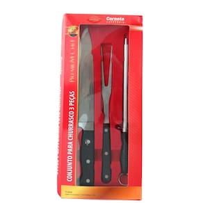 Jogo Utensílios para Churrasco 3pç Cabo Polipropileno Corneta