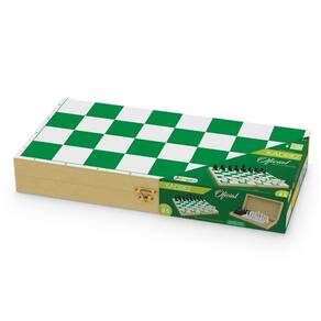 Produzido com estojo dobrável em madeira MDF de reflorestamento, o tabuleiro mede 42 x 42 cm aberto e 42 x 21 cm fechado, garantindo praticidade no armazenamento e transporte.