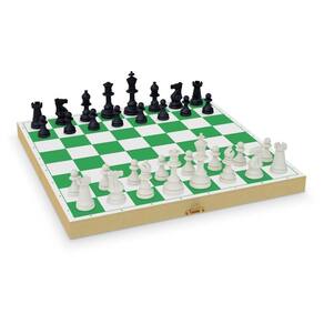 Acompanha kit de peças em plástico maciço, em tamanho oficial, com destaque para o rei de 9,5 cm de altura, além de regras básicas para iniciantes.