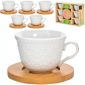 Jogo Xícara Para Café Porcelana 6un 100ml e 6 Pires Bambu Genev Rio de Ouro