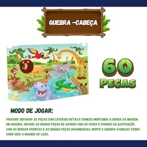Quantidade de peças: 60 Tamanho montado: 42 x 30 cm Tamanho real de cada peça: 6,5 x 3,4 cm
