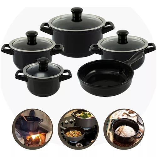 Informações: Diâmetro e capacidade das caçarolas: 14cm - 0,9L. 16cm - 1,1L. 18cm - 1,5L. 20cm - 2,5L. Diâmetro da Frigideira: 20cm. Capacidade da Frigideira: 1,2L Material: Cerâmica, Vidro, inox. Cor: Preto. Linha: Smart Duo. Fabricante: Ceraflame.
