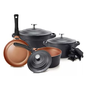 Produzidas em alumínio injetado, o destaque das panelas fica por conta do revestimento interno cerâmico na cor cobre com acabamento externo na cor black. As Caçarolas Premier Black acompanham alças protetoras e removíveis de silicone, o que proporciona maior proteção e conforto no manuseio.