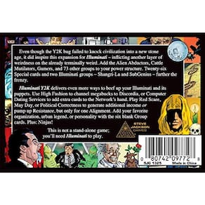 Mesmo que o inseto Y2K não tenha conseguido derrubar a civilização em uma nova era da pedra, ele inspirou essa expansão para o clássico Illuminati, infligindo outra camada de estranheza no já terminalmente estranho. Adicione sua organização favorita, lenda urbana ou personalidade com os seis cartões group em branco. Mais: Ninjas.