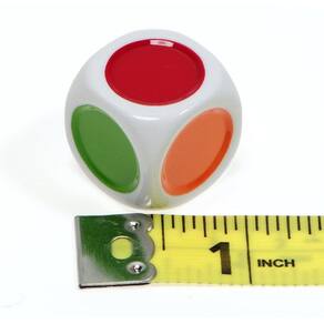 - Dados brilhantes, coloridos, de seis lados e pontos coloridos.