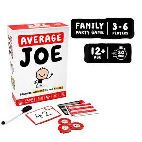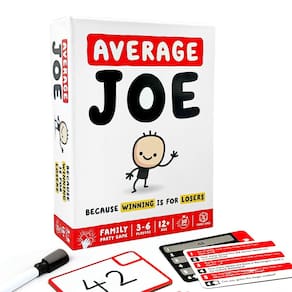 Format Games Average Joe Party Game - Abrace seu lado comum com 600 perguntas - Diversão para a família e amigos! Para maiores de 8 anos, 3 a 6 jogadores, 30 minutos de jogo, feito — DIVERSÃO INSTANTÂNEA GARANTIDA: mergulhe no jogo com regras simples e jogabilidade estratégica que fazem do Average Joe o jogo perfeito para qualquer reunião. Configure em minutos e desfrute de rodadas rápidas de 30 minutos. - RICA CAPACIDADE DE REPRODUÇÃO: com 600 perguntas envolventes criadas para desafiar seus conhecimentos e percepções diárias — nunca repita o mesmo jogo duas vezes! - CONCEITO DE JOGO ÚNICO: Esqueça de ser o melhor; você pode ser o mais comum? Average Joe vira uma típica noite de jogo de cabeça para baixo ao recompensar as respostas mais comuns. - APELO PARA TODAS AS IDADES: Ideal para jogadores com 8 anos ou mais, este jogo oferece diversão limpa e intrigante para famílias, crianças e adultos, perfeito para festas e encontros casuais. - REPLETO DE CONTEÚDO: Inclui 100 cartões de perguntas, 6 pás de respostas limpas, 6 canetas para limpar a seco, 40 fichas de pontuação, um dado e instruções fáceis de seguir, tudo garantindo uma noite de jogo emocionante.