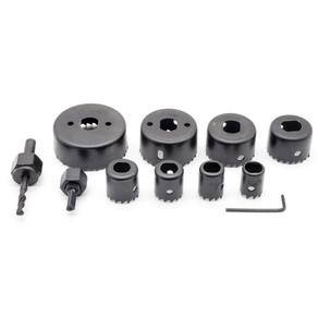 Contém 11 peças: 1 mandril; 1 broca; 1 chave allen; 8 serras copo de 19 mm a 64 mm. Altamente recomendado para fazer furos em gesso, madeira, MDF e compensado, PVC e plástico. Fabricado em aço carbono de alta qualidade e acompanha maleta. Ean: 7897451429206