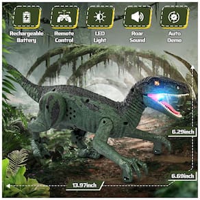 Viva a aventura de Dinossauros com um toque! Este dinossauro de controle remoto possui um modo de demonstração automático. Basta pressionar um botão para vê-lo caminhar e rugir! Com três efeitos sonoros realistas, ele traz o mundo pré-histórico à vida, criando uma experiência de jogo imersiva que desperta a curiosidade e imaginação das crianças. Perfeito para os pequenos amantes de dinossauros que adoram aventuras emocionantes. Com uma aparência realista e movimentos naturais, este dinossauro velociraptor foi projetado com texturas detalhadas, olhos em 3D e uma postura de caminhada natural, trazendo os dinossauros da era jurássica de volta à vida. O movimento suave e os detalhes vívidos mergulham as crianças em um mundo de aventuras pré-históricas. Diversão de Montagem de Dinossauro para Crianças: uma experiência prática e envolvente. As crianças podem montar o dinossauro sozinhas, incluindo a fixação do rabo e das garras dianteiras, promovendo o desenvolvimento da coordenação motora, pensamento lógico e percepção espacial. Um excelente brinquedo de dinossauro para crianças de 5-7 anos que gostam de construir, explorar e aprender brincando. Recarregável e Pronto para Longas Horas de Diversão: Equipado com uma bateria recarregável de alta capacidade, este brinquedo de dinossauro robô está pronto para brincadeiras prolongadas sem trocas frequentes de bateria. Aproveite aventuras mais longas e uso conveniente interno ou externo. O controle remoto usa 2 pilhas AA (não incluídas), permitindo um controle suave e responsivo para momentos emocionantes com dinossauros. Presente Perfeito para Crianças que Amam Dinossauros: Procurando por brinquedos de dinossauro divertidos para crianças de 3-5 anos? Este brinquedo apresenta tecnologia de controle remoto de 2,4GHz, permitindo que vários jogadores controlem o dinossauro ao mesmo tempo, ótimo para interação entre pais e filhos. Um presente maravilhoso que inspira a criatividade e fortalece os laços familiares.