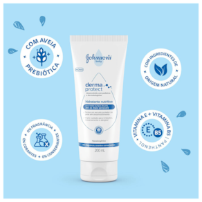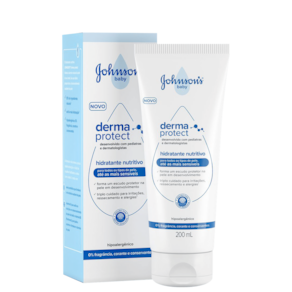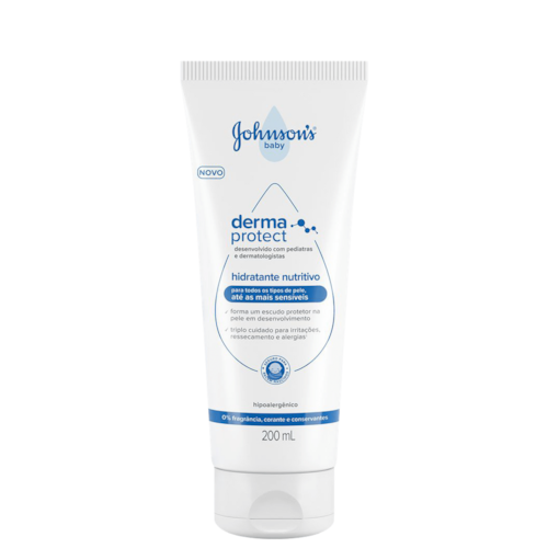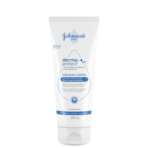 O Hidratante Nutritivo Johnson's Baby Derma Protect possui uma textura não oleosa, que é facilmente absorvida e pode ser usada desde o primeiro dia de vida do bebê. Sua fórmula foi criada por pediatras e dermatologistas, que oferecem um produto hipoalergênico e que reduz o possível surgimento de alergias.