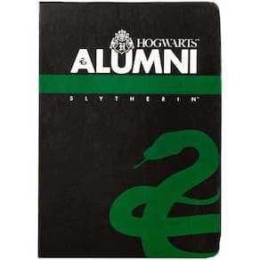 Volte para a escola... Estilo Harry Potter! Este diário de ex-alunos de Harry Potter mede 5,5 x 8 polegadas e apresenta as cores da Casa Sonserina e o mascote na capa. Inclui 80 páginas em branco e um marcador de fita. Produto oficialmente licenciado de Harry Potter. Produzido pela Seven20.