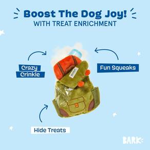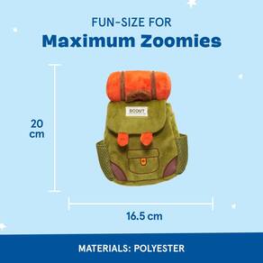 Este juguete para perro en forma de mochila está diseñado para aventuras llenas de alegría. Cuenta con una textura crujiente salvaje, un chillador grande y bolsillos para esconder golosinas, asegurando que tu cachorro esté listo para el aire libre. También incluye pequeños cierres de gancho y bucle para cuando la aventura se pone difícil.