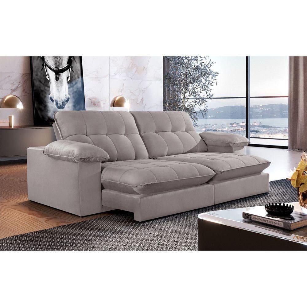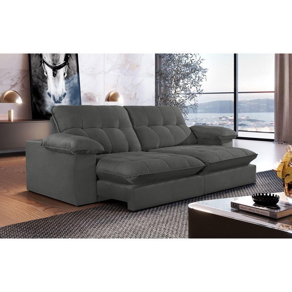 Sofá Retrátil Juiz De Fora 2,30m 4 Lugares Molas Ensac. Txr Cinza