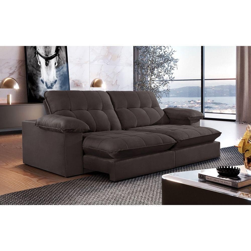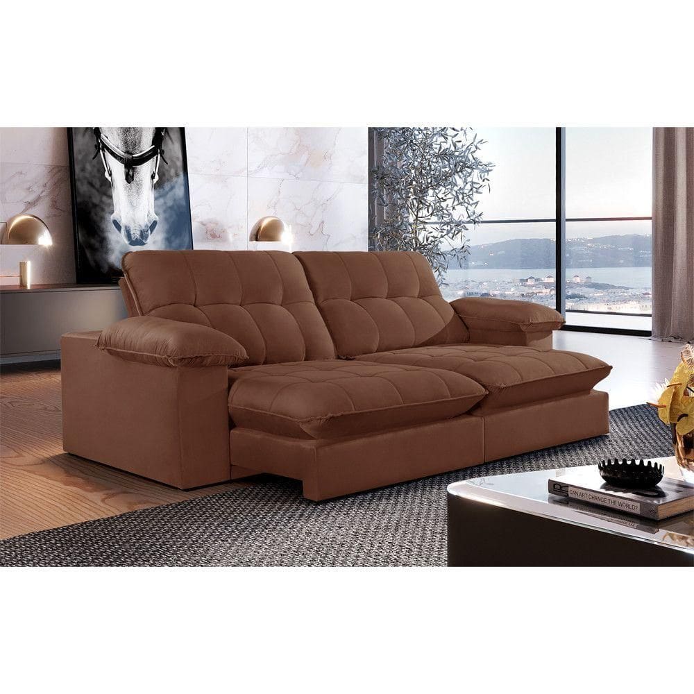 Sofá Retrátil Juiz De Fora 2,30m 4 Lugares Molas Ensac. Txr Marrom