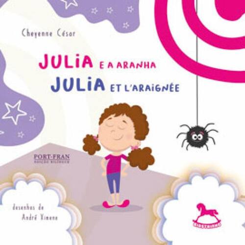 PORTUGUÊS Julia tem medo de tudo: de coisas que existem mas também daquelas que estão apenas na sua imaginação. Ela tem até medo de outras crianças. Mesmo que Mamãe e Papai estejam sempre lá para protegê-la, Julia continua com medo. Principalmente à noite, quando vem os horríveis pesadelos. Um dia, ela se depara com uma aranha enorme. Será que Julia será capaz de enfrentar seu medo? Quem poderá ajudá-la? FRANCÊS Julia a peur de tout: des choses qui existente mais aussi de celles que ne sont que dans son imagination. Elle a même peur des autres enfants. Malgré Papa et Maman, qui sont toujours là pour la protéger, Julia a peur. Surtout la nuit, quand elle fait des horribles cauchemars. Un jour, elle est confrontée à une énorme araignée. Est-ce que Julia sera capable d’affronter sa peur? Qui pourra l’aider?