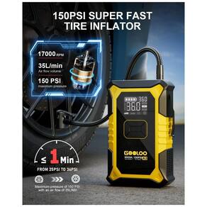 O GOOLOO A3 é um dispositivo portátil multifuncional que integra partida de emergência para veículos e compressor de pneus com desligamento automático, projetado para motores a gasolina até 9,0 L e diesel até 6,5 L em sistemas 12V. Equipado com bateria de lítio de alta densidade, oferece corrente de pico de 3000A para inicialização rápida de baterias descarregadas, com proteção contra inversão de polaridade e sobrecorrente.