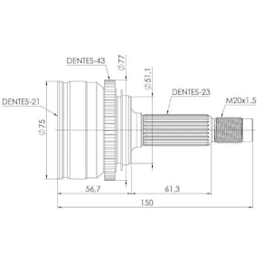 Face 1.3 16v c/abs câmbio manual - posição do anel - ml, 21 dentes interno, 23 dentes externo, abs 43 dentes - 2010, 2011, 2012, 2013, 2014, 2015, 2016, 2017, 2018, 2019