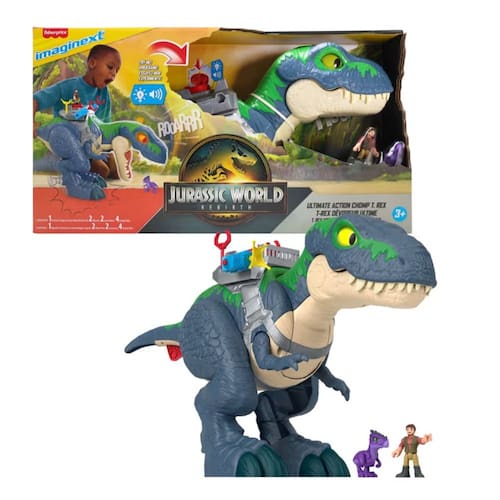 Os jovens fãs de Jurassic World vão rugir junto com o Imaginext Ultimate Action Chomp T. rex da Fisher-Price, que apresenta luz, som, movimento e ação! Com 45 cm de altura e 76 cm de comprimento, o dinossauro gigante ruge e ruge, move a cabeça, tem olhos que acendem, lançadores removíveis e pode segurar figuras de 7,5 cm na boca, uma figura humana e uma de dinossauro estão incluídas para brincadeiras de contar histórias assim que a caixa abrir. A ação começa com o gatilho na cauda ou com o Power Pad no topo fáceis de segurar para as mãozinhas das crianças e que ajudam os pré-escolares a desenvolver a coordenação motora fina. Uma língua com textura realista adiciona emoção tátil. Recrie cenas de Jurassic World Rebirth ou imagine novas histórias. Os fãs de dinossauros e ação podem se envolver em brincadeiras imaginativas enquanto conquistam aventuras e se divertem muito.