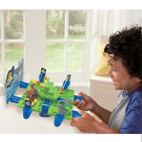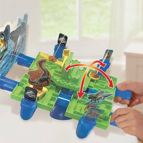 Um jogo de aventura de ação de mesa divertido e emocionante inspirado no mundo do filme Jurassic World “Jurassic World Rebirth”. Manobre cuidadosamente a bola através dos obstáculos complicados usando 4 botões de controle diferentes e um botão! Para mais diversão, substitua as placas dos personagens por figuras que você coletou de outras séries de brinquedos Jurassic World da Epoch Games!