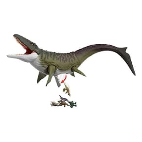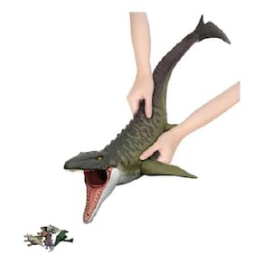 Traga toda a aventura de "Jurassic World: Rebirth" para sua casa com o boneco gigante do Mosassauro! Com aproximadamente 91 cm de comprimento, articulações móveis e um design fiel ao filme, este dinossauro está pronto para poses e batalhas incrivelmente realistas. Além disso, ele possui a capacidade de "engolir" ate 20 mini dinossauros, proporcionando diversão sem limites para a criançada. Basta abrir o compartimento na barriga do Mosassauro para soltá-los e recomeçar a brincadeira.Design fidelidade ao filme Jurassic World.Articulações móveis que permitem diversas poses.Possibilidade de "engolir" mini dinossauros e soltá-los pela barriga