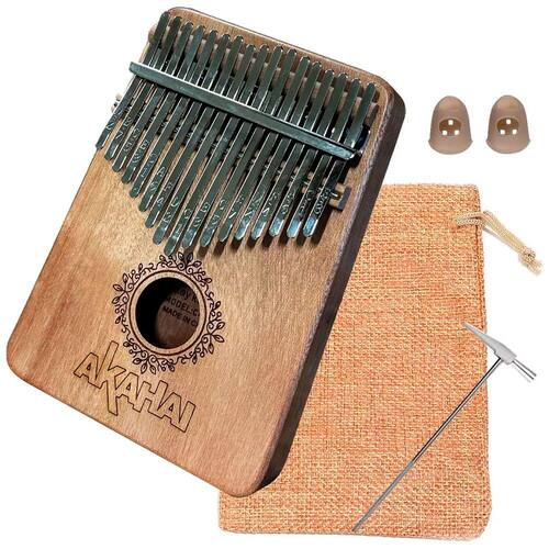 As chaves de metal da Muspor Kalimba são montadas em uma caixa de madeira sólida que funciona como uma câmara de ressonância.