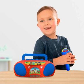 Karaokê Boombox Infantil - Patrulha Canina - Candide: esse aparelho karaokê com função amplificadora veio para divertir as crianças. Basta conectar o reprodutor de som e cantar suas músicas favoritas. Detalhes: • Aparelho de karaokê com função amplificadora que vai trazer muita diversão para suas festas musicais • Com este aparelho, você pode conectar seu celular ou dispositivos de áudio e soltar a voz, cantando suas músicas preferidas ao lado dos adoráveis personagens Chase, Marshall, Rubble e Skye • Com um design divertido e cheio de cores vibrantes, a Boombox Karaoke Patrulha Canina é perfeita para animar festas, encontros com amigos e momentos em família Informações: • Produto: Caixinha Boom Box Karaokê Musical • Marca: Candide Brinquedos • Coleção: Patrulha Canina (Paw Patrol) • Tipo: Caixinha de Som Infantil com Microfone • Categoria: Instrumentos Musicais de Brinquedo • Tamanho: • Conteúdo: - 01 Caixa de Som Boombox - 01 Microfone • Recomendação: para crianças a partir de 03 anos de idade Especificações: • Referência: 1971 • Código de Barras: 7897500519711 • Embalagem (C x A x L): 34.5 x 21.5 x 8.5 cm • Embalagem (Peso): 0.494 kg • Material / Composição: Plástico • Funcionamento: à pilhas - 3 pilhas AA 1.5v (Inclusas) • Registro: 002252/2022 • Certificado: Órgãos Autorizados - OCP´S (Organismos de Certificação de Produtos) Aviso: • As imagens são meramente ilustrativas • Os pesos, tamanhos e medidas são aproximados • As cores e estampas dos produtos podem ter variações • As informações são de responsabilidade do fabricante ou fornecedores