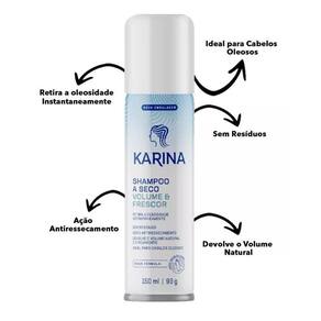O shampoo à seco Karina Revitalizante é um tratamento ideal para manter os seus cabelos revitalizados, limpos e perfumados. Ele conta com uma Aminotech, que elimina a oleosidade instantaneamente da raiz, sem ressecar e mantendo o brilho natural dos seus cabelos. Seus benefícios : Deixa os cabelos revitalizados, limpos e perfumados, com Aminotech que remove a oleosidade sem ressecar, mantém o brilho natural dos cabelos, indicado para todos os tipos de cabelo -Retira a oleosidade instantaneamente sem deixar resíduos, fios leves e macios, com movimento e brilho.