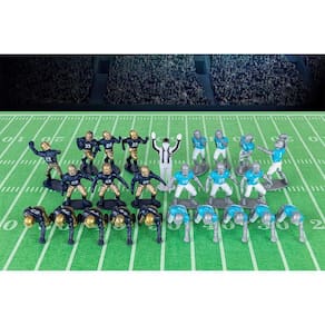 Os caras do futebol inspirarão horas de jogo criativo e aberto em esportes que amam crianças de 3 anos ou mais. Sem regras ou direções definidas, as crianças são inspiradas a brincar com essas figuras esportivas da maneira que têm brincado com figuras de ação há anos, usando sua imaginação. Assim que as crianças montam os 24 Caras, árbitro, sentiram os postes de campo e gol que vêm embalados no conveniente caso de transporte, eles controlam a ação e serão contratados por horas. As crianças podem recriar jogos da NFL que viram ou jogos da Pop Warner em que jogaram. Treinadores de futebol juvenil e analistas da ESPN usam os Football Guys como uma ferramenta de treinamento e ajuda visual para descrever jogos e cenários de dia de jogo. Os pais podem usar os jogadores de futebol para ensinar o jovem fã de futebol em sua própria família sobre as regras do jogo e inspirar o amor pelo futebol desde cedo. A revista InStyle apresentou Football Guys como a peça central perfeita do Super Bowl Party. O planejador de festas em qualquer família pode usar Football Guys como uma peça central temática de futebol ou simplesmente usar os GUYS como toppers de bolo e cupcake. Pesquisas mostram que o jogo aberto sem expectativas ou regras definidas é benéfico para o desenvolvimento social, emocional e cognitivo de uma criança, que é exatamente o que os Caras do Futebol foram criados para inspirar. As crianças podem até aumentar o valor da brincadeira trazendo outros brinquedos para a diversão; adicionar carros para fazer um estacionamento, usar blocos para construir um estádio, ou configurar outras figuras como espectadores. Kaskey Kids foi fundada por uma mãe de quatro filhos que estava em busca de brinquedos com tema esportivo que manteriam seus filhos entretidos e inspirados. Os conjuntos ganharam inúmeros prêmios da Indústria de Brinquedos e foram apresentados por publicações nacionais como Sports Illustrated Kids, ESPN e InStyle. Se as crianças adoram esportes e adoram brincar com bonecos de ação este é o brinquedo perfeito para adicionar à brinquedoteca. Idades 3 ou mais.