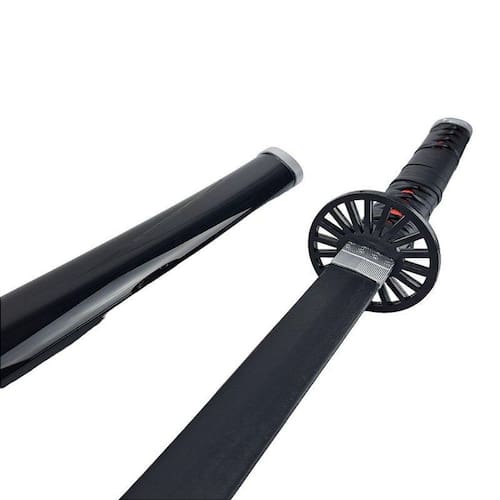 Materiais Lâmina de bambu, bainha de madeira, empunhadura de plástico e tecido, guarda de plástico.