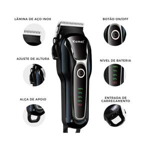 Kemei 1991 Para Petshop Cortador Recarregável Máquina Tosa de Pet Kemei 1991 - e Prática Ideal para Pets de Todos os Tamanhos: Seja em casa ou em ambiente , a Kemei 1991 proporciona alta performance para aparar pelos e unhas de maneira rápida e eficiente, mantendo seu pet sempre confortável e limpo. Características Técnicas: Sem Fio Bivolt: Funciona em 110V e 220V Potência: 5W Lâminas de Aço Inoxidável Comprimento de Corte Ajustável: De 0,5mm a 1,0mm Motor de Alta Velocidade e Operação Estável Rotação Rápida e Sem Aquecimento Tempo de Carregamento: Aproximadamente 3 horas Autonomia da Bateria: Até 120 minutos de uso contínuo Tela LCD Digital: Exibe o estado da bateria durante o uso, mantendo você informado sobre a operação. Itens Inclusos: 1 Máquina Kemei KM-1991 1 Fonte BiVolt 4 Pentes Guia 3mm, 6mm, 10mm, 13mm 1 Bisnaga com Silicone 1 Pente 1 Cortador de Unhas 1 Lixa 1 Manual do Usuário Dúvidas Frequentes: É adequada para pets de médio e grande porte Sim, graças aos pentes guia ajustáveis, é eficaz em animais de todos os tamanhos. Durabilidade e Resistência: A Kemei 1991 é fabricada com materiais de alta qualidade, oferecendo durabilidade e resistência para o uso prolongado. Com a Kemei 1991, o cuidado com o seu pet nunca foi tão fácil e eficiente Marca: Não Informado