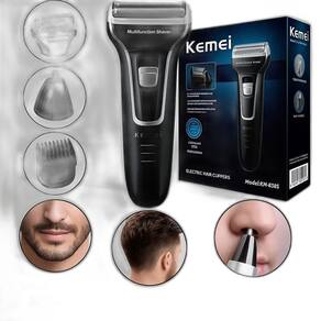 - marca: kemei - modelo número: km-6558 - alimentação: recarregável - característica: lâmina dupla - utilização: corpo, barba, bigode, cabelo, nariz e orelhas. - tempo de uso: até 60 minutos - tempo de carga: 8 horas - tensão: 110-220v - potencia nominal: 3w - material: abs + stainless steel - tamanho: 16cm x 3cm - tipo de item: barbeador elétrico, aparador de pelos e cortador de cabelos