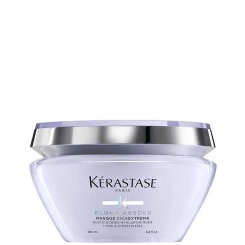Kérastase Blond Absolu Masque Cicaextreme traz fórmula enriquecida com duo de ácido hialurônico e óleo de edelweiss, que proporcionam um tratamento profundo para reconstruir o cabelo após a descoloração, tornando a fibra capilar mais uniforme e saudável.
