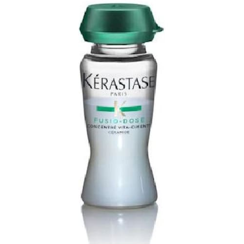 Kérastase Fusio-Dose Ampola Concentré Vita-Ciment é um tratamento altamente concentrado para cabelos enfraquecidos, com Complexo Vita-Ciment possui ceramida biomimética para preencher os espaços intercelulares e reconstruir totalmente a fibra capilar. Com Kerastase Resistance Ampola Vita Ciment a fibra capilar fica perfeitamente lisa e brilhante até as pontas, pois elimina a aspereza do fio, além de deixa-La fluida, solta e maleável. Tipos de Cabelos: Cabelos Fracos Ação: Fios soltos e maleáveis com nunca. Age diretamente na fibra capilar deixando-A perfeitamente lisa. Modo de Usar: Lave os cabelos com o shampoo Kérastase indicado para seu tipo e retire o excesso de água. - Retire a tampa do frasco da ampola e encaixe o booster tampa no corpo da ampola e rosqueie no sentido anti-Horário para liberar o fluído do booster. - Agite o frasco para misturar os concentrados. - Separe o cabelo em mechas e retire a tampa da ampola para iniciar aplicação no comprimento e pontas dos fios lavados e enxutos. - Massageie delicadamente as mechas e deixe agir por 5 minutos. - Enxague delicadamente em seguida com água morna para fria. - Para melhores resultados seque os fios com um secador utilizando um protetor térmico de sua preferência.