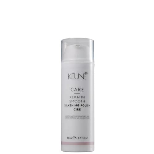 Keune Care Keratin Smooth Silkening Polish Bálsamo defrisante e protetor térmico. Keune Care Keratin Smooth Silkening Polish protege os fios da umidade e calor, combate o frizz e dá brilho. Sua fórmula não-oleosa evita efeito pesado nos cabelos.