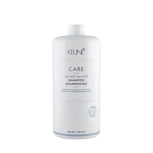 Shampoo desamarelador para cabelos loiros, com mechas ou grisalhos. Keune Care Silver Savior Shampoo neutraliza os tons quentes para revelar um fundo platinado bonito.