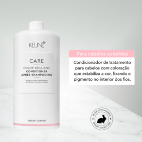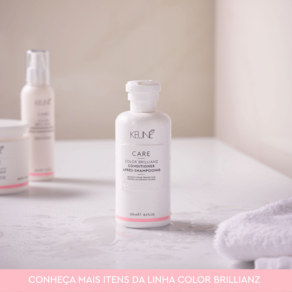 Condicionador para cabelos coloridos. Condicionador Keune Collor Brillianz evita o desbotamento e estabiliza a cor. O cabelo fica pigmentado e luminoso por mais tempo. A fórmula complexa de Condicionador Keune Collor Brillianz oferece o cuidado extra que o cabelo colorido exige. Com ingredientes específicos de fixação e estabilização, cria uma barreira ao redor do fio e que mantém a cor por mais tempo. Proporciona brilho, nutrição e proteção contra os danos causados pelo sol, sem pesar. O cabelo fica protegido e com cor luminosa por mais tempo!