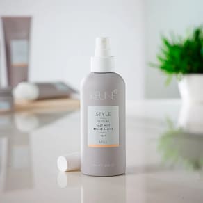 Spray de sal para todos os tipos de cabelo. Keune Style Salt Mist texturiza os fios para construir ondas de estilo praia.