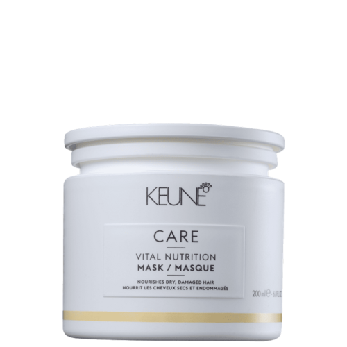 KEUNE VITAL NUTRITION MASCARA CARE 200ml Máscara para cabelos secos e grossos. Keune Care Vital Nutrition penetra nas camadas dos fios para hidratar e reparar os danos.