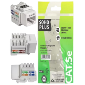 Conector Fêmea Keystone RJ45 Cat5e Branco Soho Plus - FurukawaAplicaçãoSistemas de Cabeamento Estruturado para tráfego de voz, dados e imagens, segundo requisitos da norma ANSI/TIA/EIA-568B.2 (Balanced Twisted Pair Cabling Components), para cabeamento horizontal ou secundário, uso interno, em ponto de acesso na área de trabalho para tomadas de serviços em sistemas de cabeamento estruturado.CaracterísticasEste conector é homologado pela Anatel e compatível com fios RJ45, ideal para conexões de rede. O modelo é o Conector Furukawa Sohoplus RJ45 Cat5, disponível em um pacote com 100 unidades. Possui um número de registro/certificação INMETRO de 0 e não é um kit. O item é novo e conta com uma quantidade de pinos de 1. A ficha é do tipo RJ45 e o produto não possui validade. Marca: Furukawa.