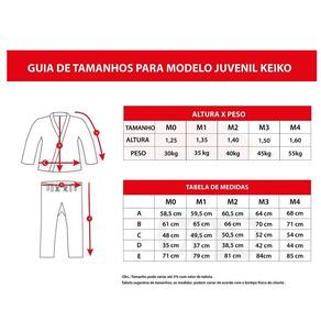 O Kimono se encontra dentro das regras das Confederações de Jiu Jitsu. - Kimono que atende as necessidades praticas de diferentes modalidades (judô e jiu jistu). - Ideal para iniciantes e pratica escolar. - Fabricado em sarja 234 g/m². - Composição 100% algodão - Sarja - Com tingimento reativo, que evita desbotamentos. - Etiqueta na calça e na parte inferior vagui. - Acompanha faixa branca *** CONFIRA O TAMANHO ANTES DE EFETUAR A COMPRA. ***