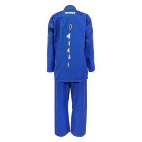Diferente dos modelos de karatê, este kimono é robusto, feito para suportar a tração, garantindo segurança e durabilidade para a criança.