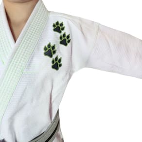 Tecido da Blusa: Confeccionado em tecido trançado leve (gramatura de 273 g/m²), 100% algodão. O tecido é pré-encolhido, o que evita surpresas após as primeiras lavagens.Calça: Fabricada em sarja 100% algodão, material conhecido por sua durabilidade e conforto durante a movimentação no tatame.Reforços Estratégicos: Possui reforços extras em pontos de maior desgaste e reforço que vai até o joelho, além de duas costuras na barra, garantindo maior vida útil ao produto e segurança para o atleta.Design: Utiliza remendos em transfer, permitindo um acabamento mais nítido e estético.Modelo: Jiu Jitsu Wolf Jr;