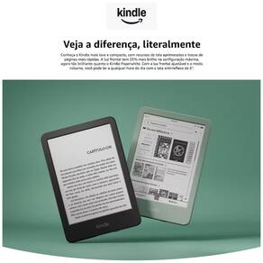 A bateria de longa duração é outro destaque, com autonomia de até 6 semanas, dependendo do uso. Conectividade Wi-Fi de 2,4 GHz e 5 GHz garante downloads rápidos e sincronização eficiente com sua conta Amazon. Sendo da 11ª geração, este modelo 2024 incorpora avanços tecnológicos que otimizam sua experiência de leitura.