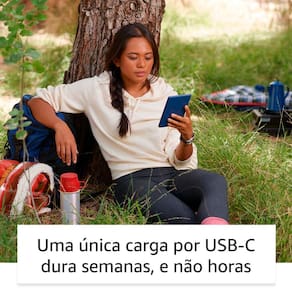Ele conta com bateria de longa duração, assim é possível ler por semanas sem se preocupar com recargas constantes. Basta uma única carga por USB-C para você aproveitar de sua biblioteca virtual por até 6 semanas aproximadamente.
