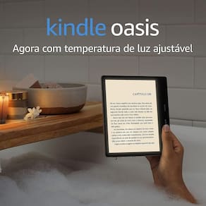 Agora com tela maior e temperatura de luz ajustável - O Kindle com a maior e melhor resolução - tela Paperwhite de 7" e 300 ppi. Leia como se fosse em papel, sem reflexo, mesmo sob a luz do sol. - Temperatura de luz ajustável para escolher entre um tom mais branco ou âmbar para sua tela. - À prova d`água (IPX8) para ler na praia, piscina, banheira ou onde quiser. - Design fino, leve e ergonômico com botões dedicados para troca de páginas. - Leia como se fosse em papel com a nova tecnologia e-ink para trocar de página rapidamente. - Acesso instantâneo a milhões de livros. Especificações técnicas - Tela: Tela de 7" com tecnologia Paperwhite, e-ink Carta e iluminação que se ajusta automaticamente, 300 ppi, tecnologia de fonte otimizada e escala com 16 níveis de cinza. - Tamanho: 159 mm x 141 mm x 3.4-8.3 mm - Peso: 188g. Tamanho e peso podem variar conforme o processo de produção. - Requisitos de sistema: Nenhum; completamente sem fio e não necessita de um computador para baixar conteúdo. - Resolução: 300 ppi - Mudança de página: Tela sensível ao toque + botões de virada de página - Iluminação embutida: Sim - 25 LEDs + sensor de luz adaptável + ajuste da temperatura de luz - Requisitos de sistema: Nenhum; completamente sem fio e não necessita de um computador para baixar conteúdo. - Armazenamento na nuvem: Armazenamento gratuito na nuvem para todo conteúdo da Amazon. - Armazenamento no dispositivo: 32 GB (armazenamento destinado a conteúdo e sistema operacional); armazena milhares de eBooks. - Conectividade Wi-Fi: Compatível com redes Wi-Fi ou hotspots públicos ou privados nos padrões 802.11b, 802.11g ou 802.11n com protocolos de segurança WEP, WPA e WPA2 via autenticação com senha ou Wi-Fi Protected Setup (WPS). - Formatos de conteúdo compatíveis: Compatível com redes Wi-Fi públicas e privadas ou com hotspots que usem os padrões 802.11b, 802.11g ou 802.11n com suporte para segurança WEP, WPA e WPA2 por meio de autenticação com senha ou WPS (Wi-Fi Protected Setup) - Garantia e serviço Garantia limitada e assistência técnica por 1 ano inclusas. - Inclusos na caixa Novo Kindle Oasis, cabo USB 2.0 para recarga. - Cor Grafite Ean: 0841667181943